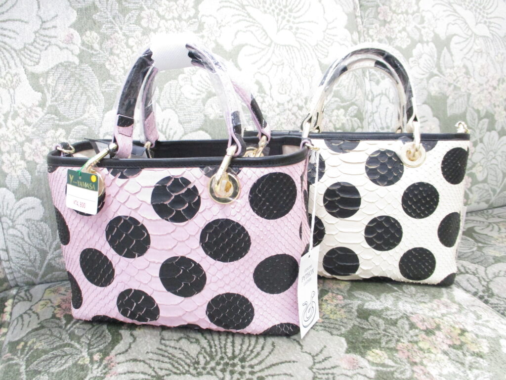 まずは水玉模様がPOPなパイソンバッグ
