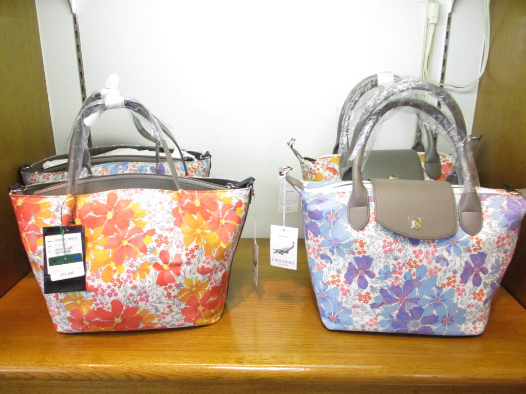 ちょっと変わった ピッグスキンのフラワープリントバッグ